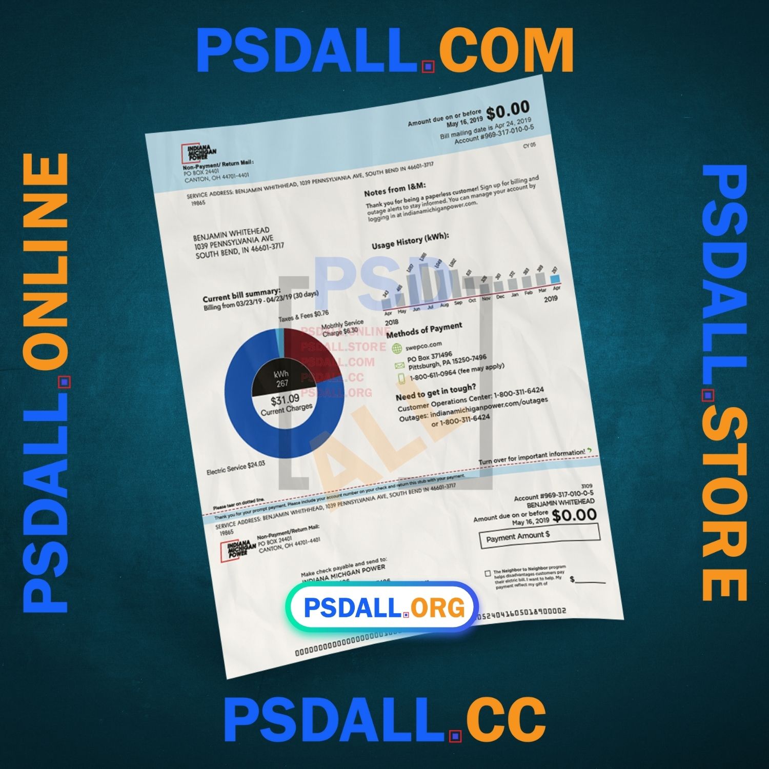USA Michigan Electricity Bill PSD Template at the best price.